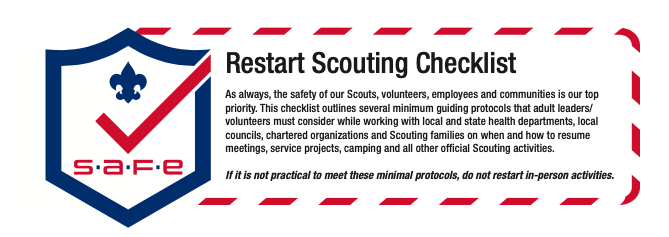 As our area begins to relax the “shelter in place” restrictions, you may be considering restarting in person unit activities. BSA has a released a guide to safe reopening of your unit. Keep our youth and adults safe in scouting!